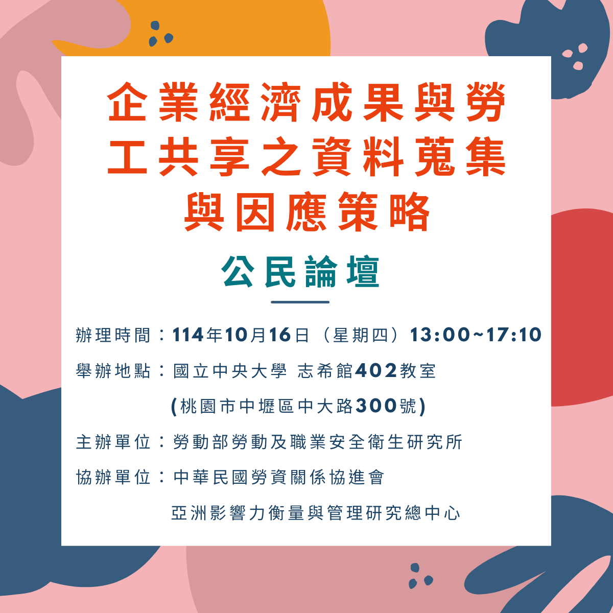 114年10月16日(四)企業經濟成果與勞工共享之資料蒐集與因應策略公民論壇