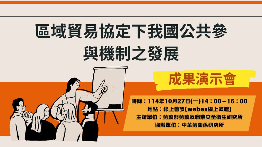 114年10月27日(一)「區域貿易協定下我國公共參與機制之發展」 成果演示會