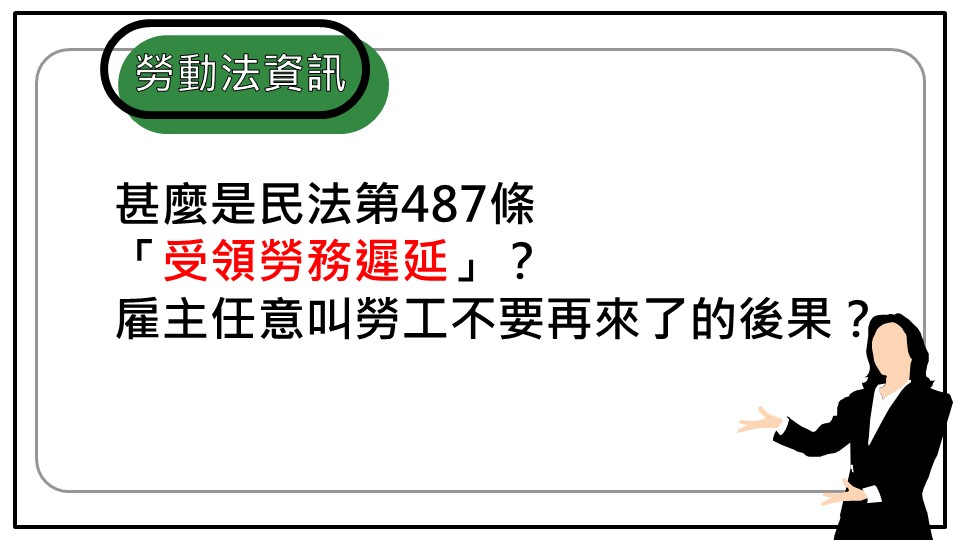 甚麼是民法第487條「受領勞務遲延」?雇主任意叫勞工不要再來了的後果?