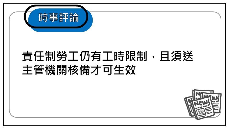 【新聞】責任制勞工仍有工時限制,且須送主管機關核備才可生效
