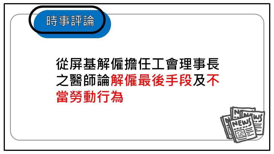 【新聞】從屏基解僱擔任工會理事長之醫師論解僱最後手段及不當勞動行為
