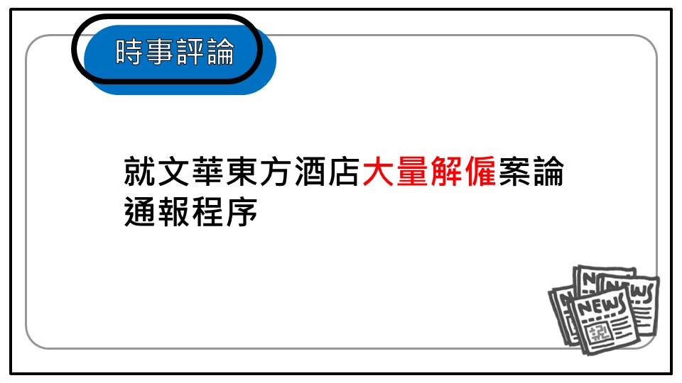【新聞】就文華東方酒店大量解僱案論通報程序【新聞】就文華東方酒店大量解僱案論通報程序