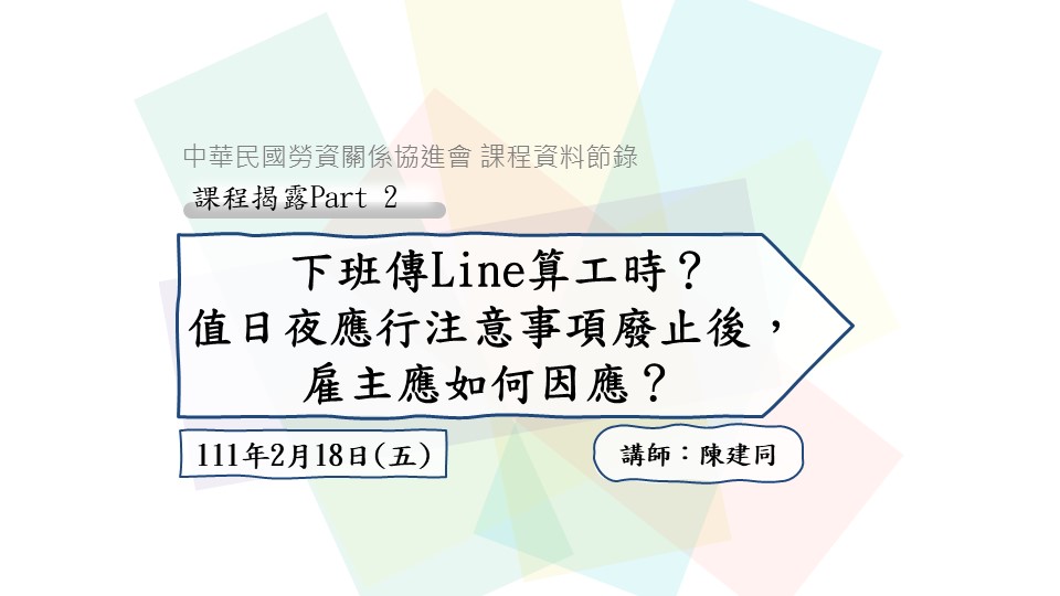 【2月18日 下班傳Line算工時? 值日夜應行注意事項廢止後, 雇主應如何因應?】課程事前揭露Part 2