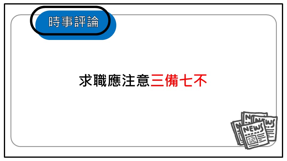 三備的重點其實在於「確定、陪同、存疑」,即確定面試地點、應徵公司資料,有必要則請親友陪同面試(或至附近等待),並應對於應徵公司之說法存疑。