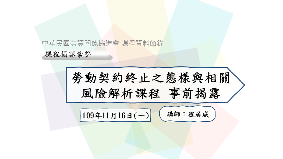 課程揭露大綱-11月26日【北區】雇主與企業管理者必知勞動力管理學及風險管控解析課程揭露大綱-11月26日【北區】雇主與企業管理者必知勞動力管理學及風險管控解析