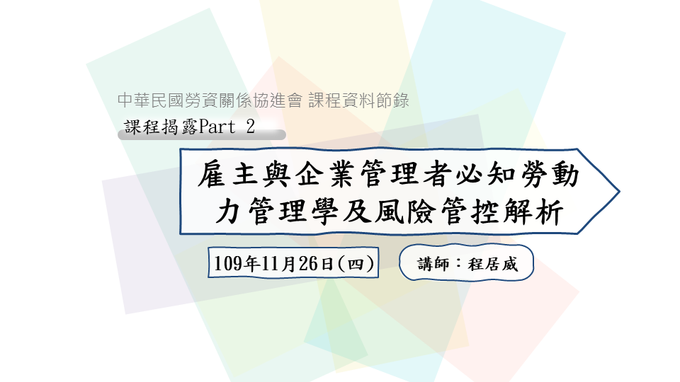 【11月26日 雇主與企業管理者必知勞動力管理學及風險管控解析 課前揭露】Part 3【11月26日 雇主與企業管理者必知勞動力管理學及風險管控解析 課前揭露】Part 3