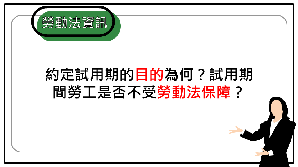 雖然勞基法並未有「試用期」規範,且勞基法施行細則也已於86年,即刪除「試用期間不得超過四十日」之規範,但其實法律並未限制勞資雙方約定「試用期」喔!!(施行細則刪除規範後,反而使得勞資雙方試用期之約定更加寬鬆) -