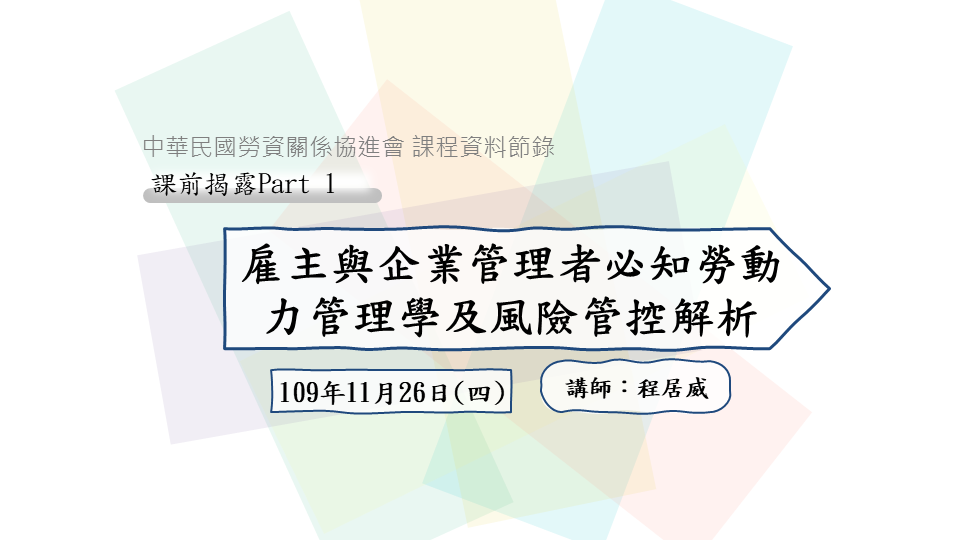 【11月26日 雇主與企業管理者必知勞動力管理學及風險管控解析 課前揭露】Part 3【11月26日 雇主與企業管理者必知勞動力管理學及風險管控解析 課前揭露】Part 3