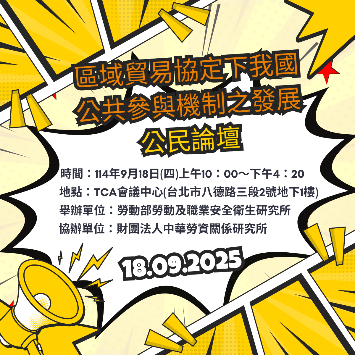 114年9月18(四)區域貿易協定下我國公共參與機制之發展公民論壇